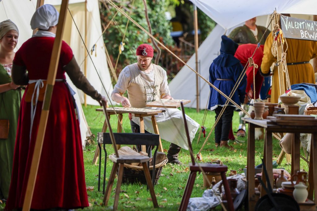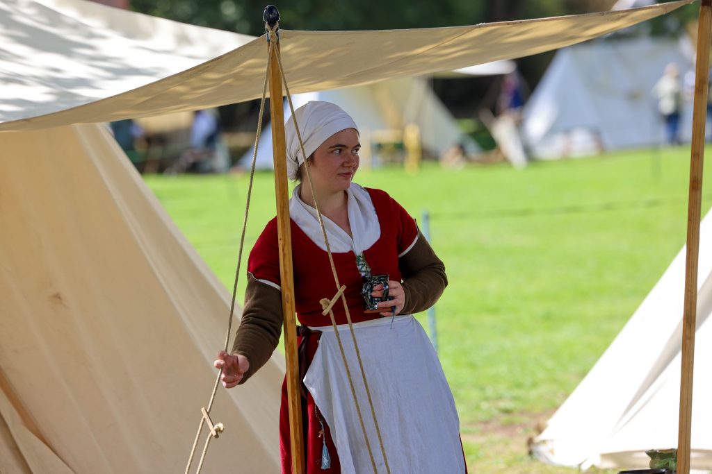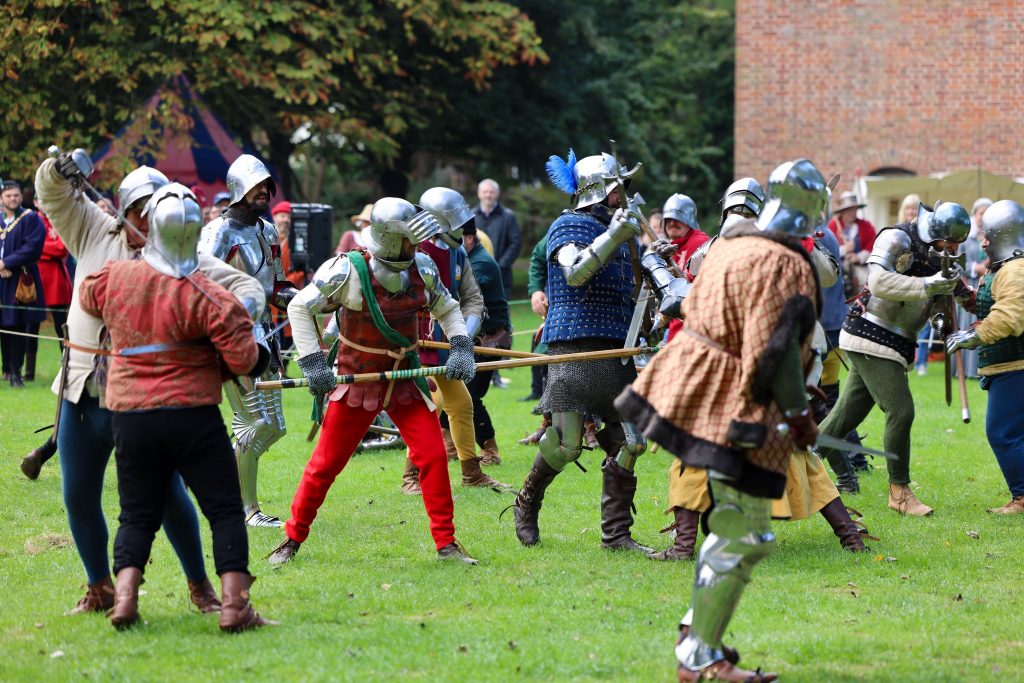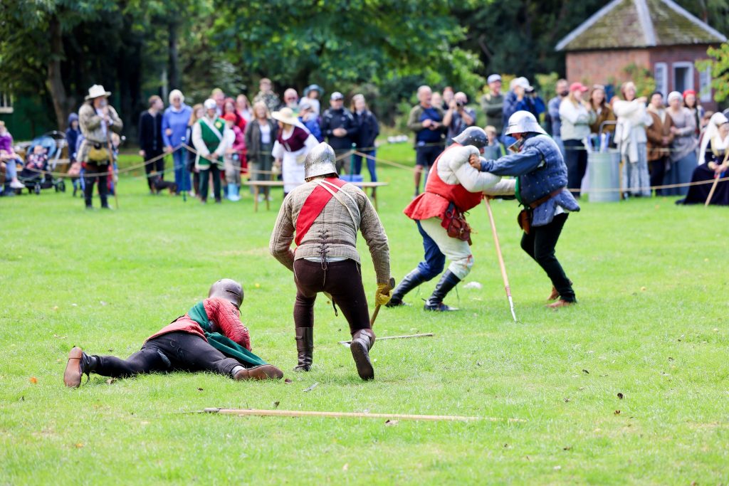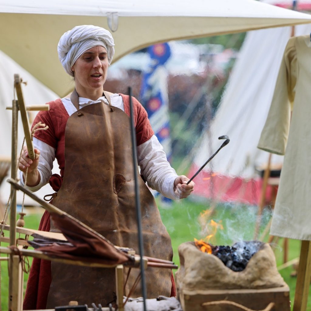 We rounded off the UK season with our annual visit to Avoncroft Museum of Historic Buildings in Bromsgrove. While Sunday was a very wet day, we managed to pull off a very successful 3 phase battle display, portraying the battle of Loosecote. Saturday was kind to us, and with our Wars Of the Roses Federation friends we were able to display some excellent living history too – cooking, spinning, weaving and forging along with our resident surgeon. We also were able to put on our fashion show, explaining the clothes of the period.
